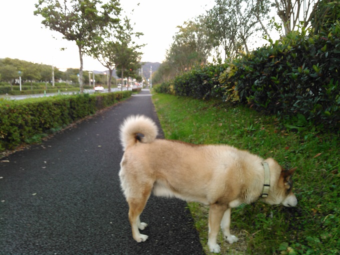 うって変わって晩散歩はしっかり歩いてくれました^^;