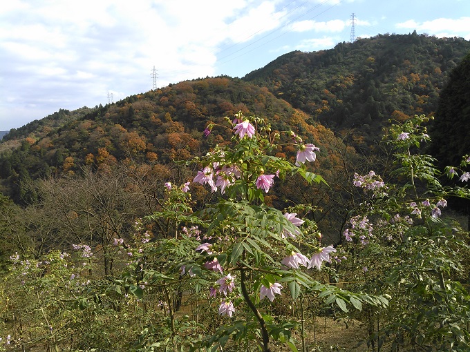 水の都、紅葉を背に皇帝ダリア!!^^