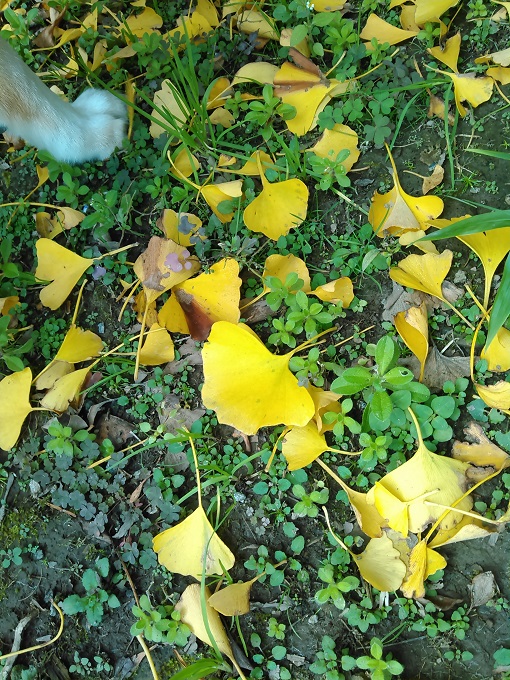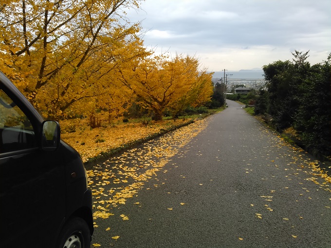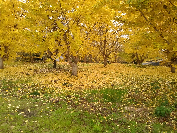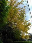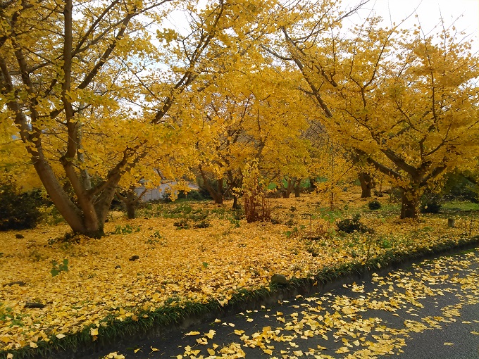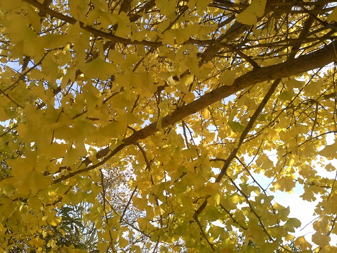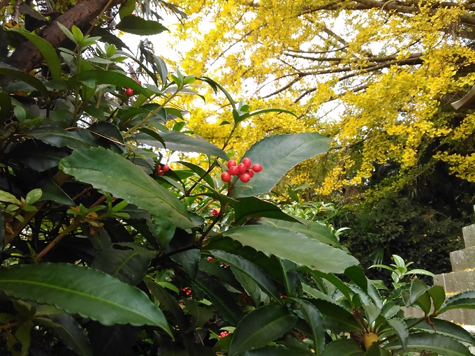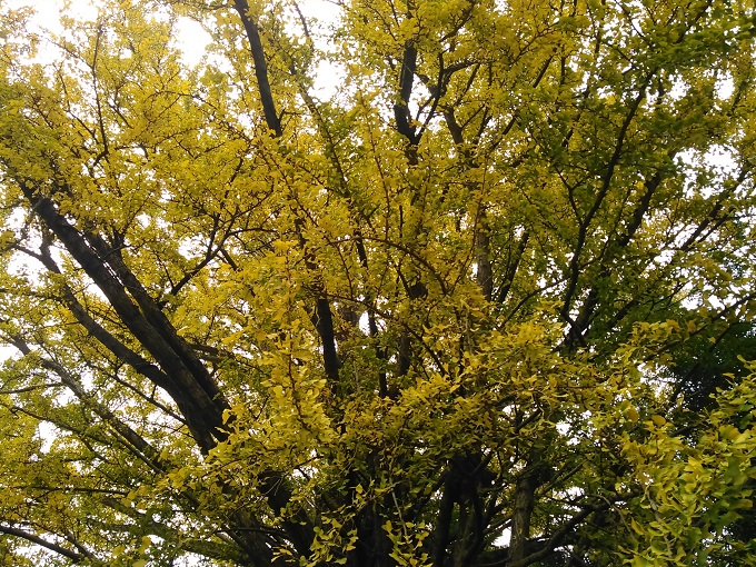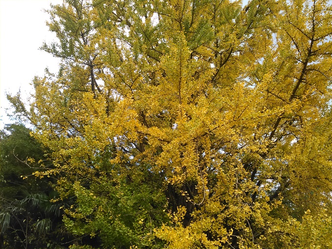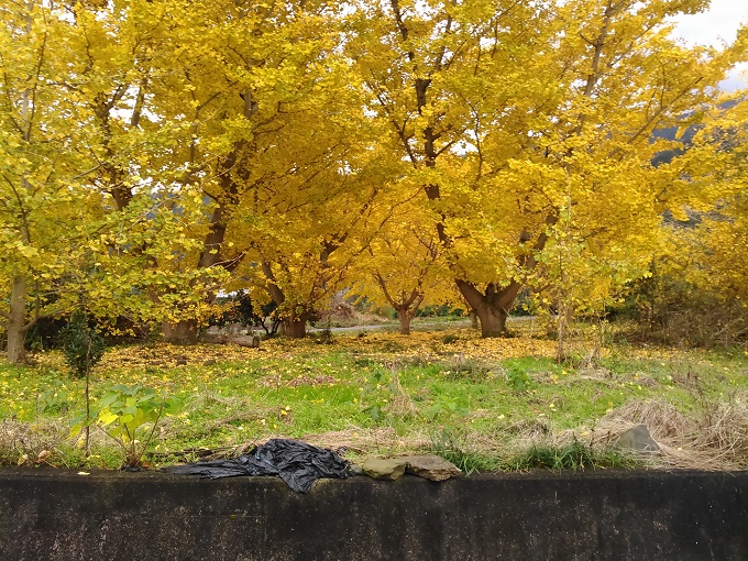 何気なく山手を見ると、黄色く照り映える