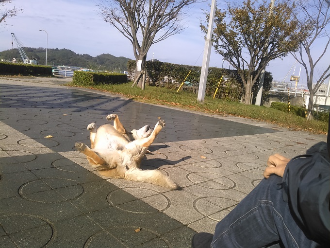犬好きだという見知らぬおじさんに可愛がって