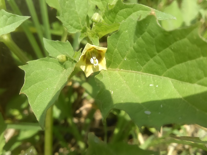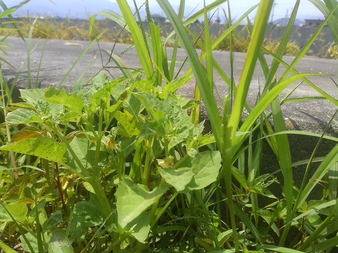 次いで産直市近くの畑の脇でヒロハフウリンホオズキの